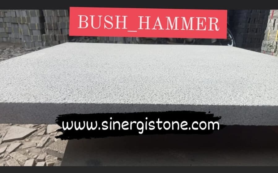 Bush Hammer merupakan tekhnik membuat permukaan batu andesit grade A menjadi lebih kasar dan lebih putih berkilau, lebih seragam dengan menonjolkan mineral Quartz dan silika pada batu andesit grade A. Quartz di jam tangan atau jam dinding bukan lah merek melainkan mineral yang paling banyak terdapat di kerak kontinen BUMI yang digunakan untuk menggerakkan putaran jarum jam analog secara akurat, sedangkan Silika adalah bahan baku utama industri kaca.